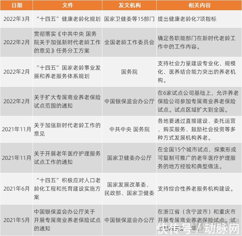 近一年来密集的养老服务政策,资料来源:中国政府网、国家卫健委官网,动脉网制图